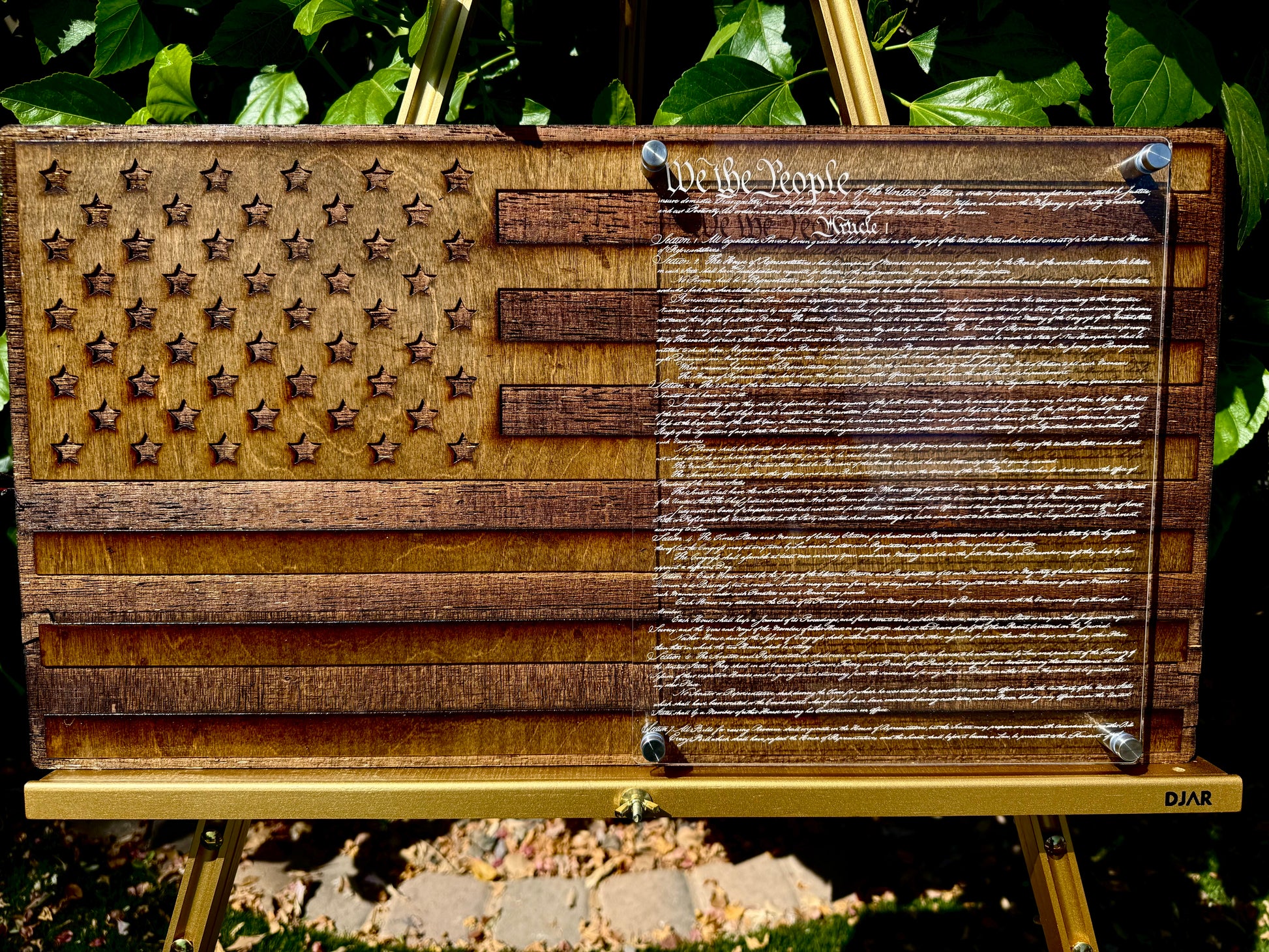24" Laser-Engraved Birch USA with the Constitution Preamble on 1/4" Acrylic Stand-Off