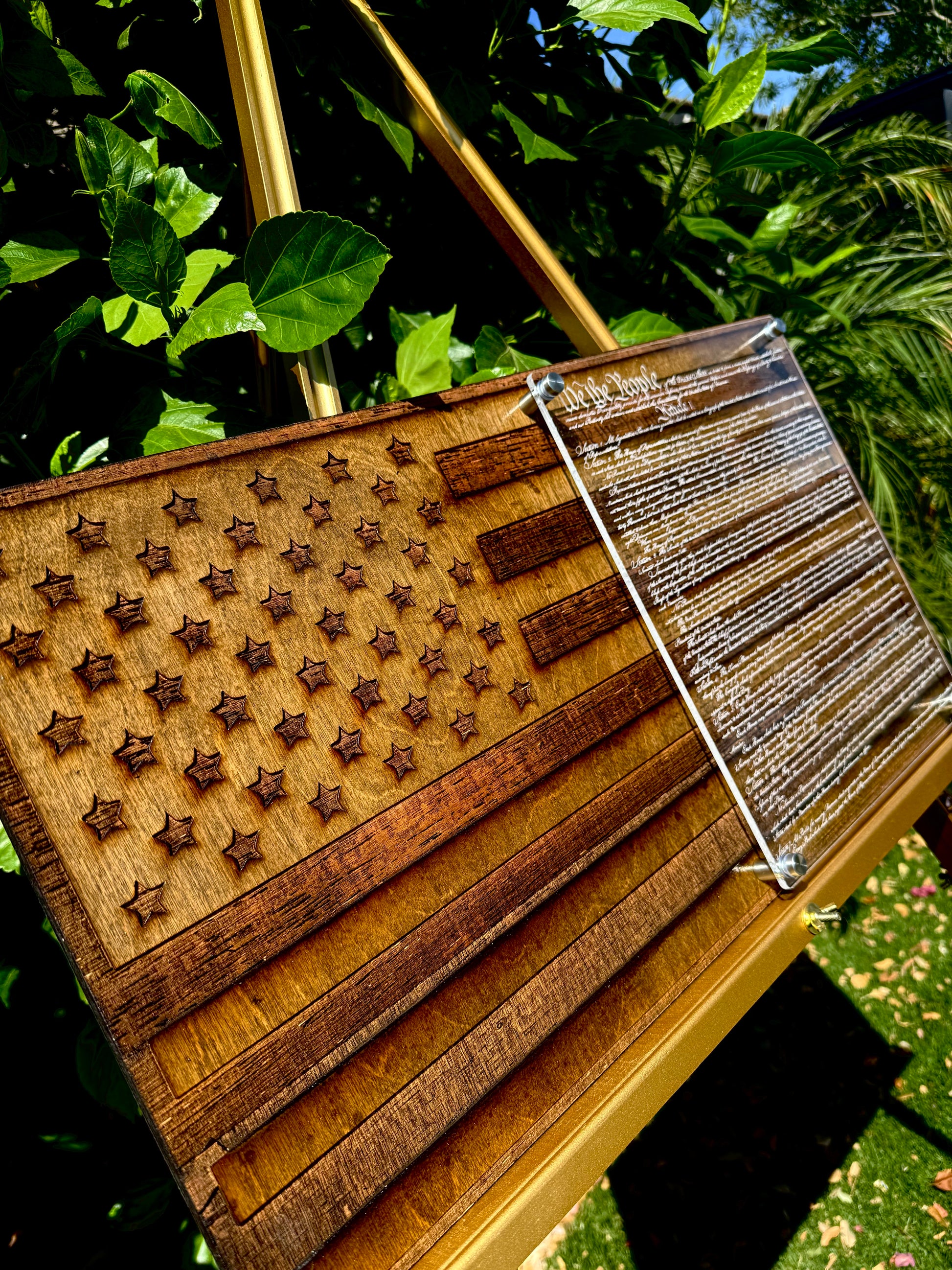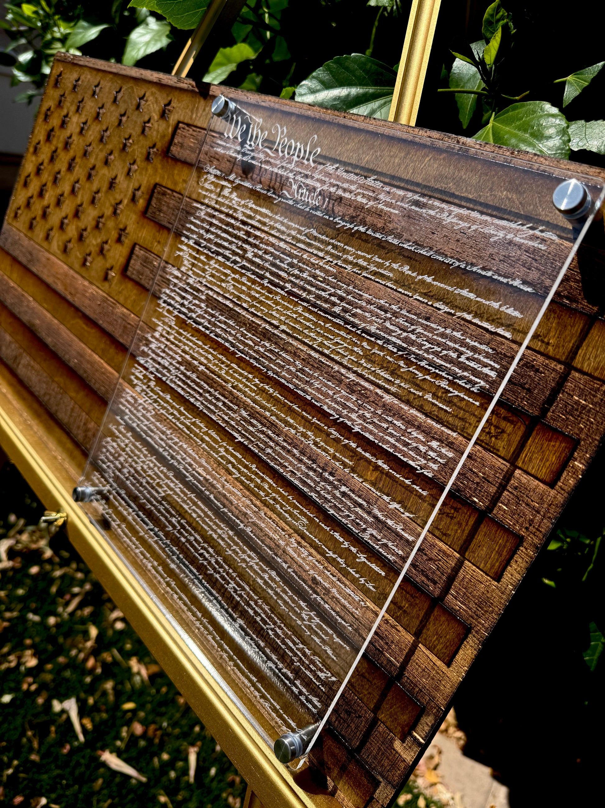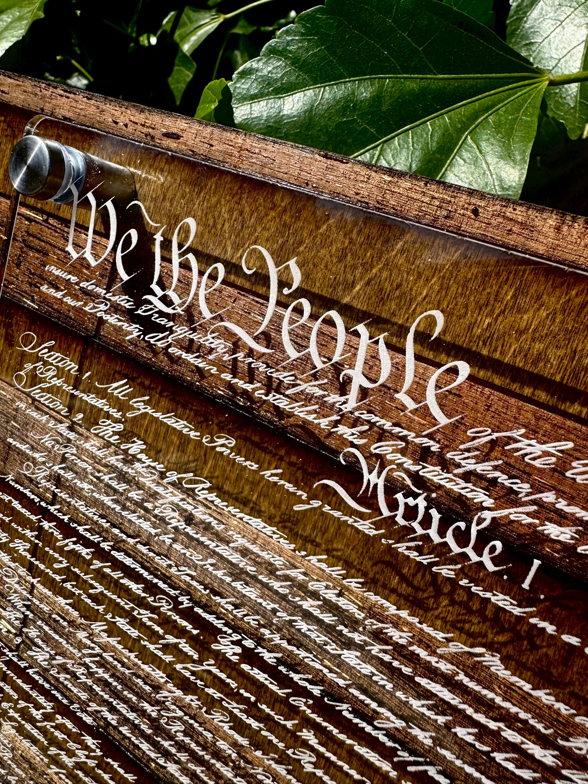 - 1/4" clear cast acrylic engraved with the Constitution Preamble