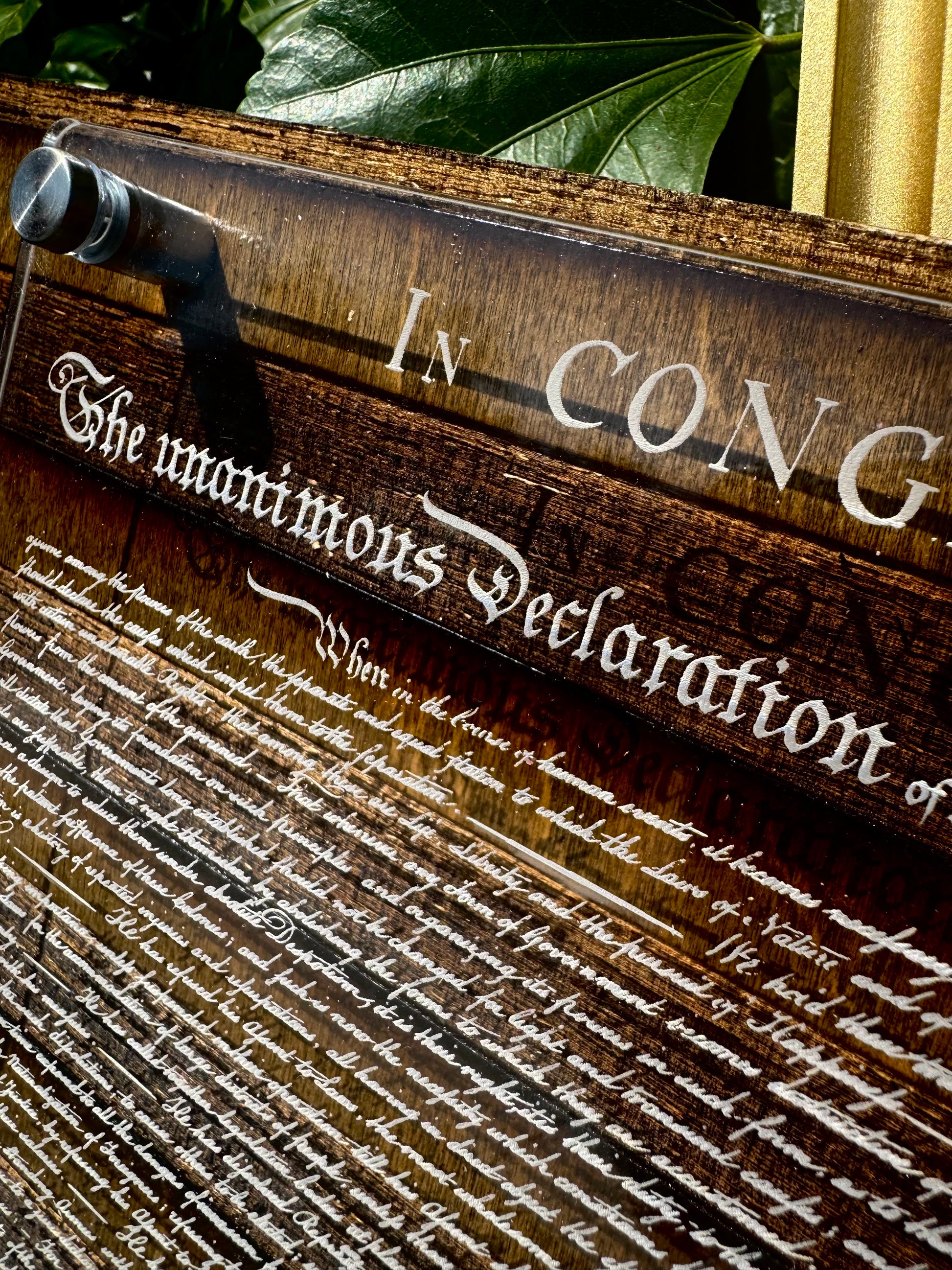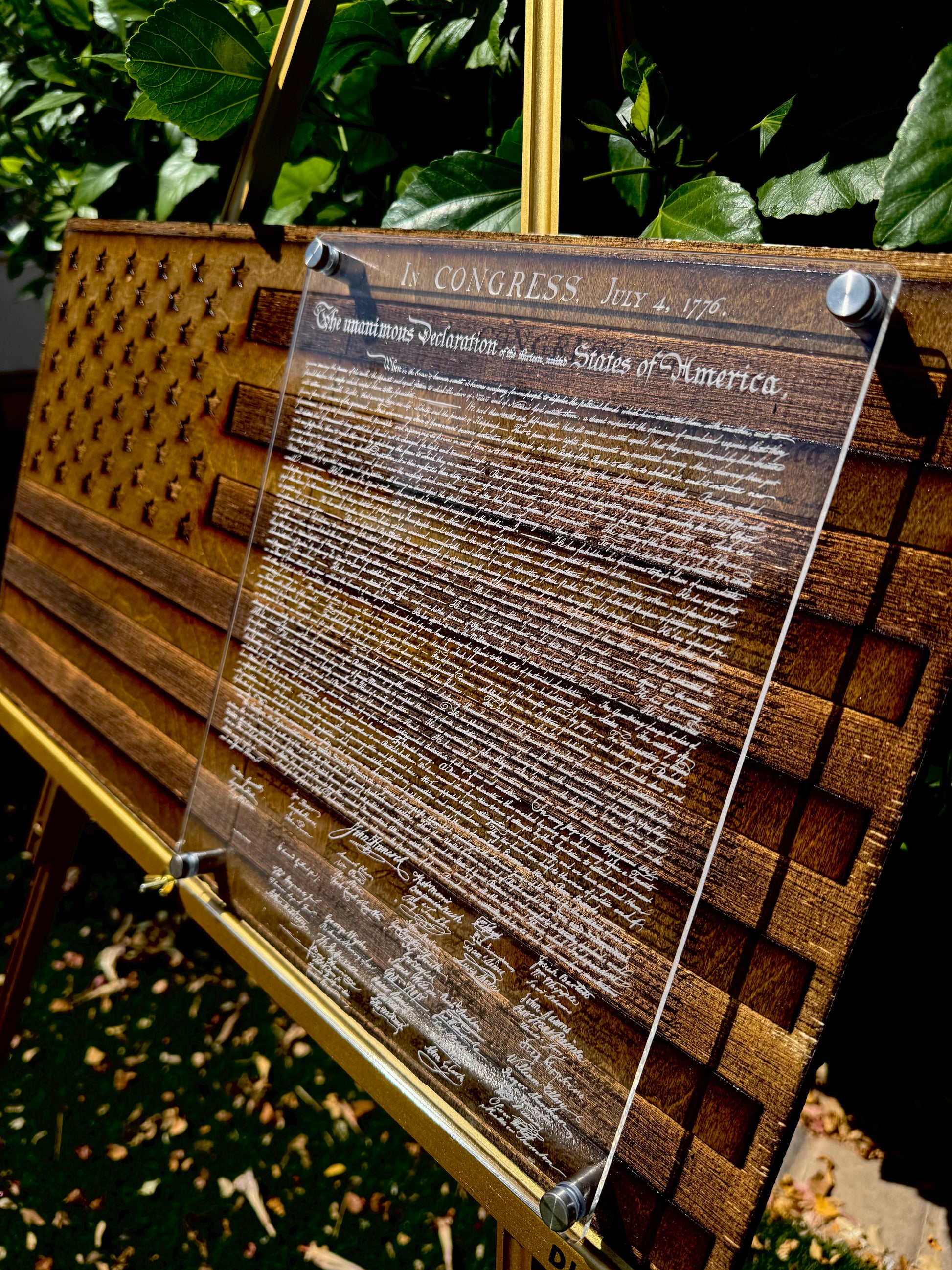 - 1/4" clear cast acrylic engraved with the Declaration of Independence