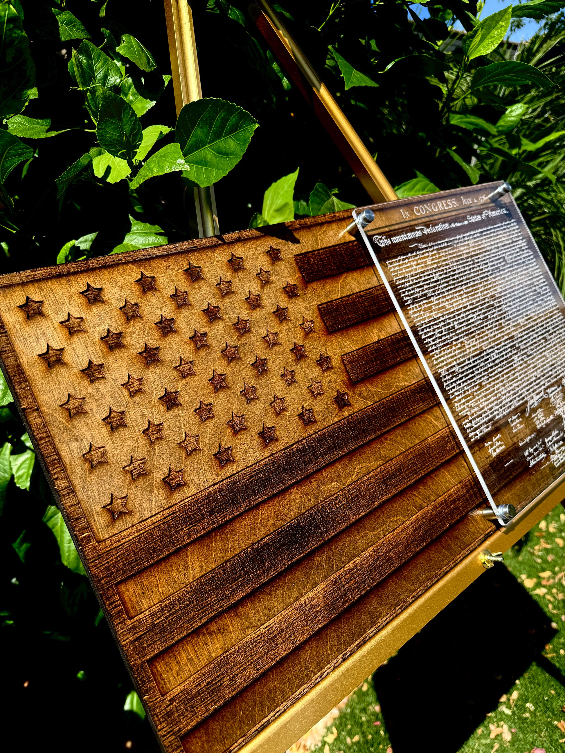 24" Laser-Engraved Birch USA with the Declaration of Independence on 1/4" Acrylic Stand-Off
