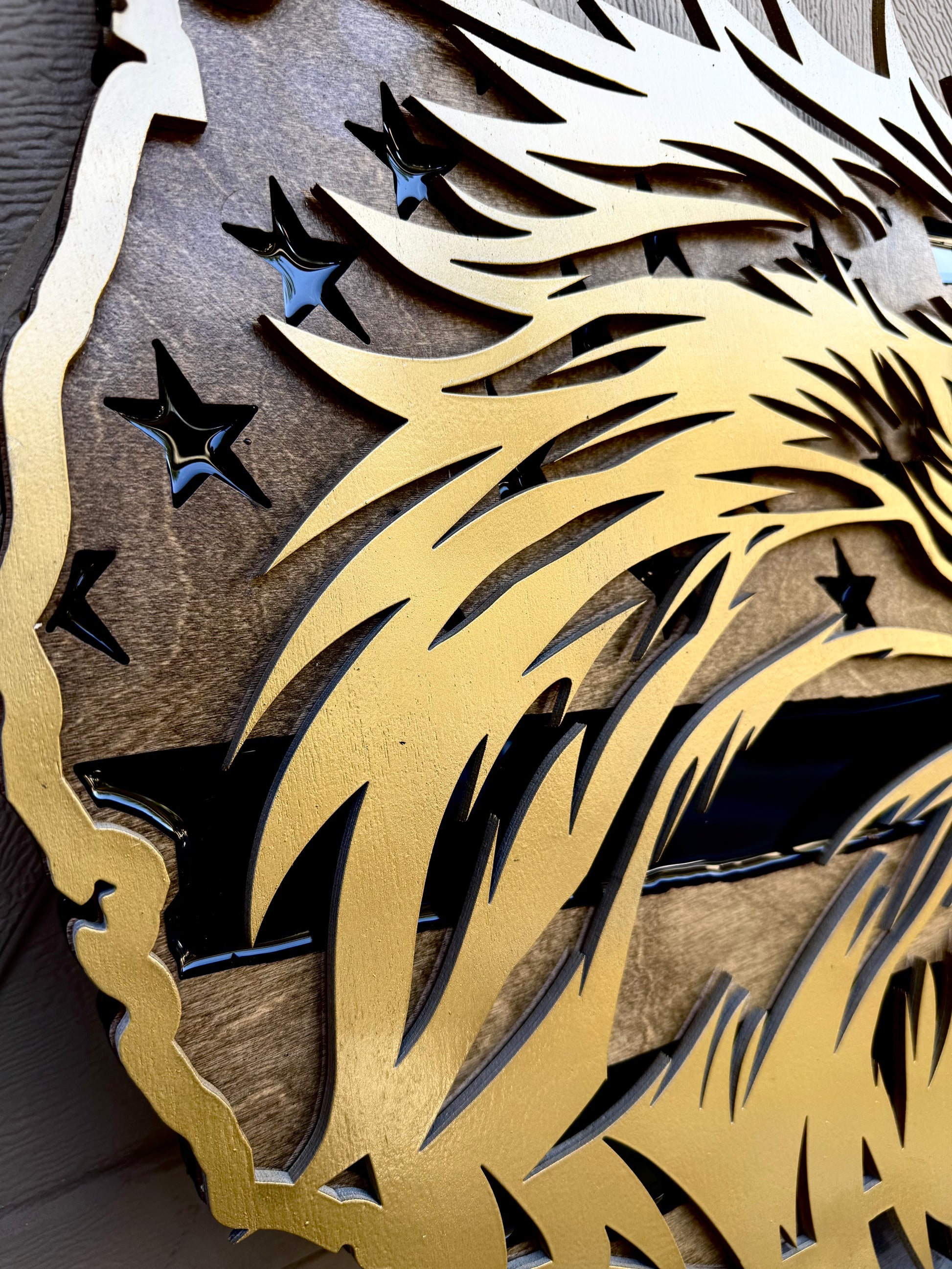 30" Tri-Layer Birch Wood USA Wall Art with Golden Bald Eagle Cutout & Epoxy Resin Inlay – Patriotic Wooden Decor