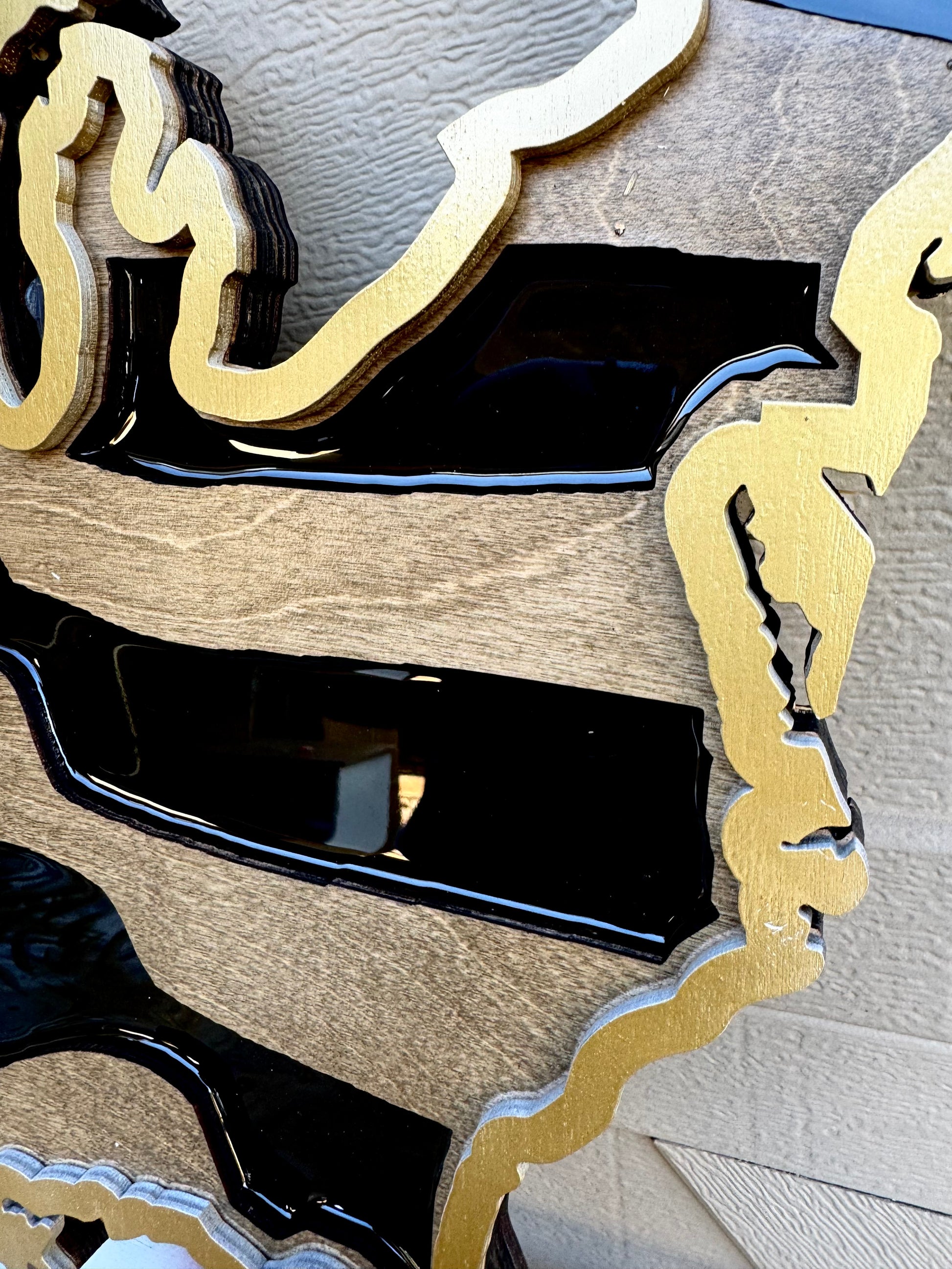 Show your American pride with this stunning 30" Tri-Layer Stained Birch Wood USA Wall Art featuring a golden painted majestic Bald Eagle and epoxy resin inlay. Handcrafted from high-quality birch plywood, this patriotic piece blends natural wood grain with precision laser-cut detailing to create a bold and dimensional tribute to the USA.